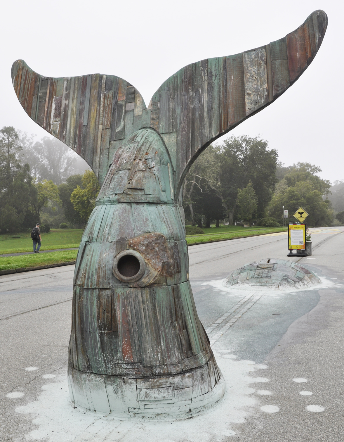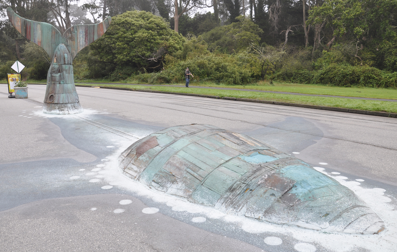| The life-sized, 50-foot-long Pheena the Fin Whale was designed by Larry Foster and installed next to the Lawrence Hall of Science in 1975. The fiberglass sculpture was restored in 2021. For more, see this website. [map] |