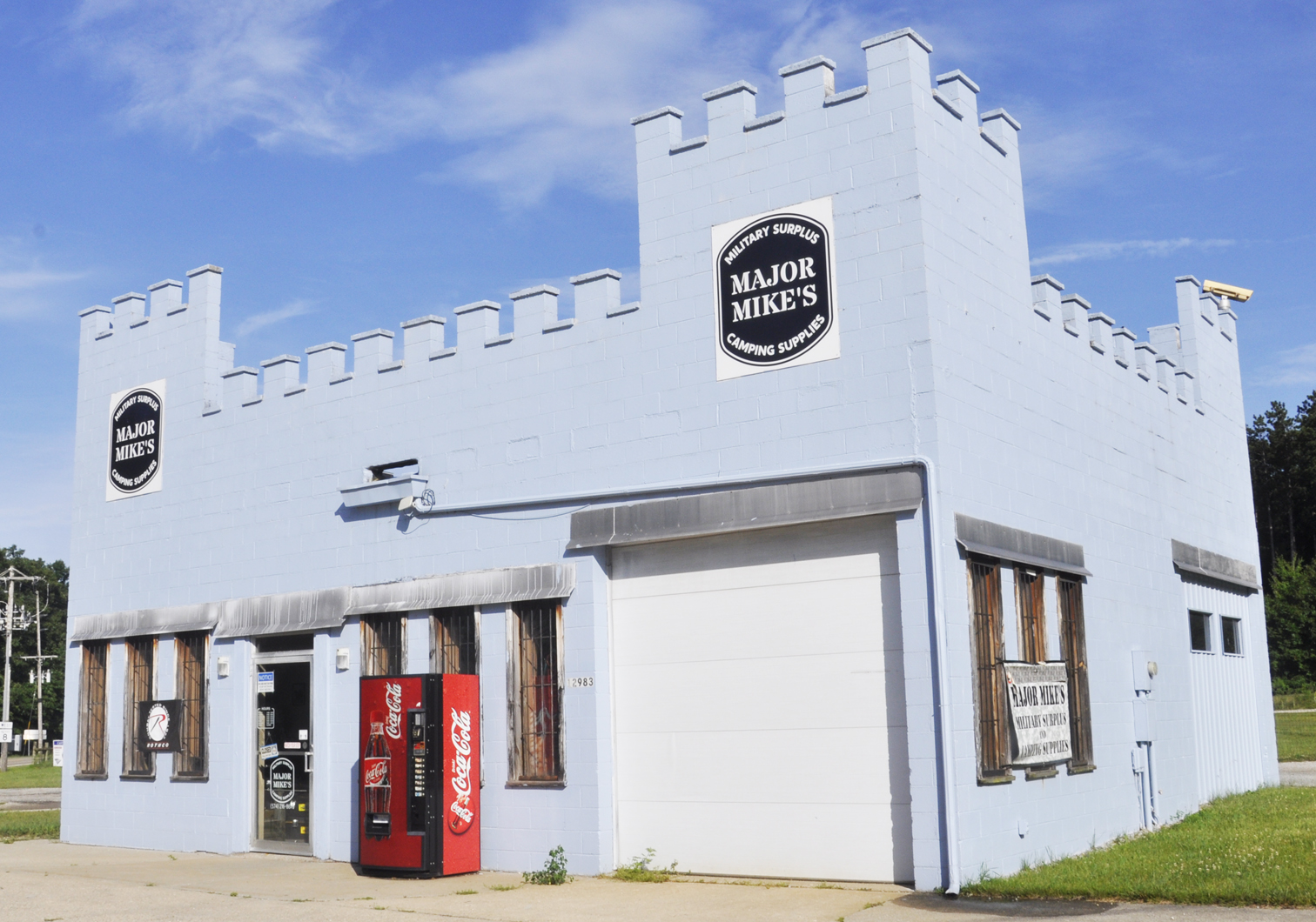 | I believe this building was built for Castle Storage but I don't know when. By 2009, it was housing the Garage Sale Store. It now houses Major Mike's Military Surplus and Camping Supplies. [map] |