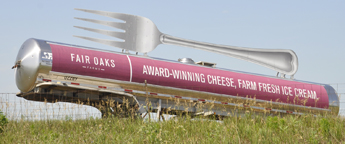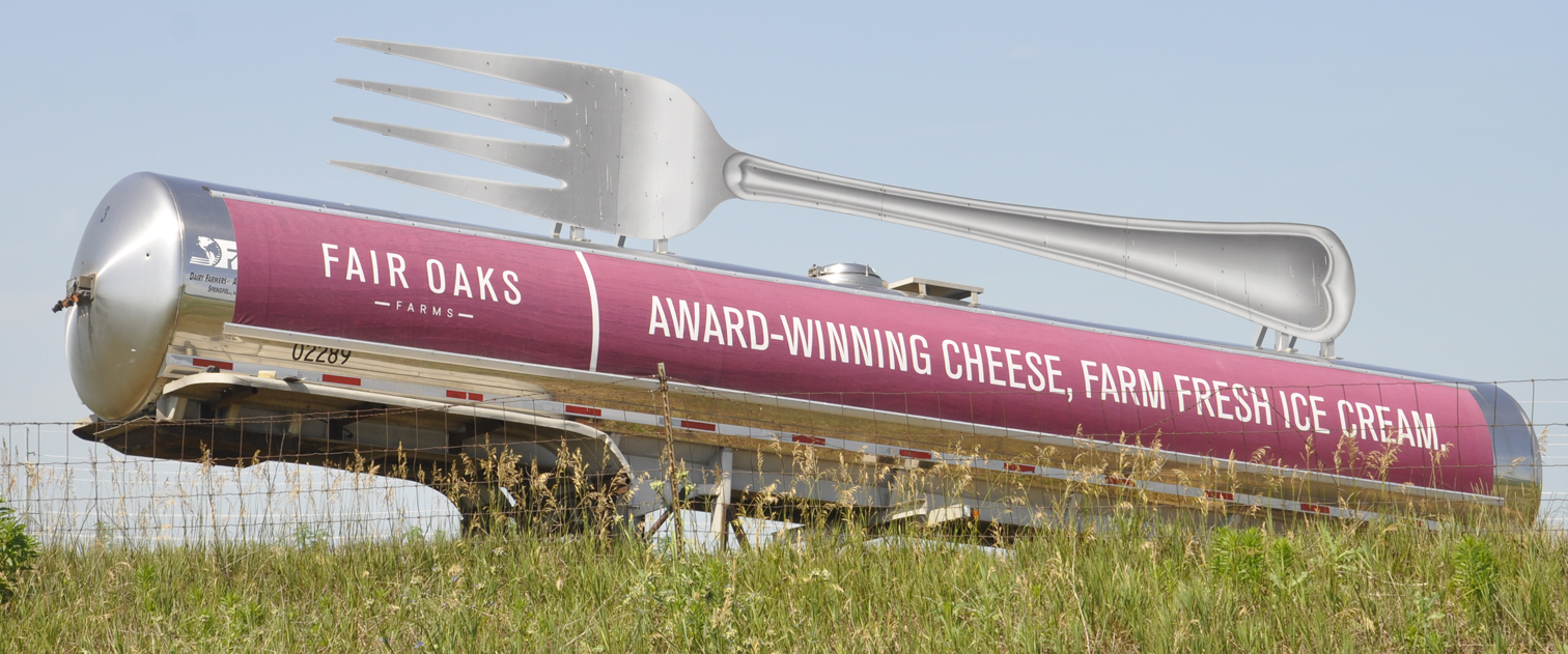 This Fork is installed on a milk tanker trailer alongside I-65 as an advertisement for Fair Oaks Farms. It has been there since at least 2017. [map]