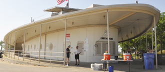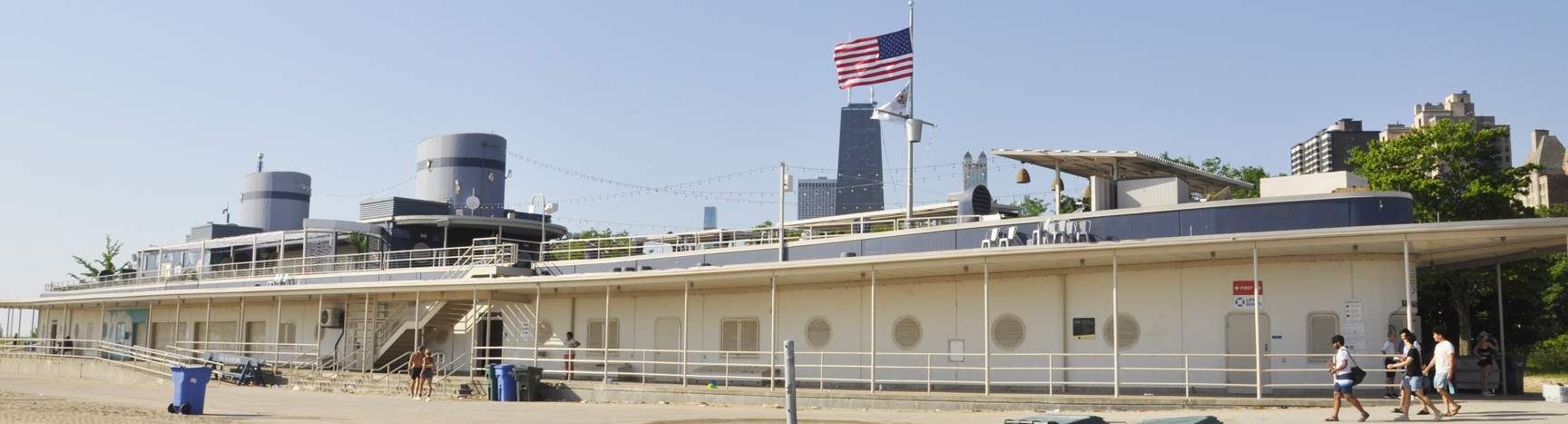 The steamboat-shaped North Avenue Beach House was constructed in 1940 as a WPA project. It housed a concession stand, lifeguard station, and restrooms. In 1999, it was replaced with this more realistic ship. For more, see this website. [map] |