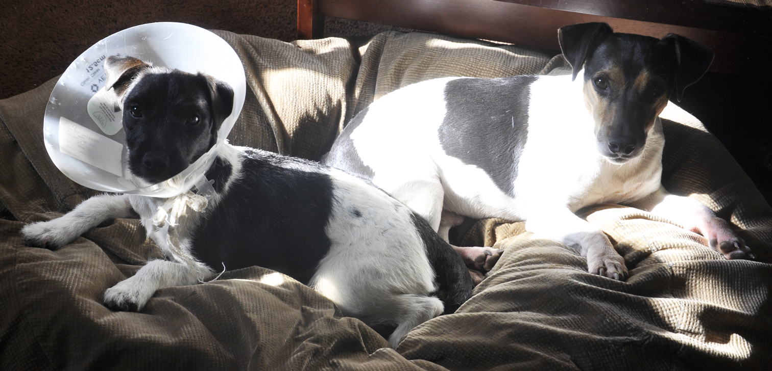 | Marina Park (Ventura), 2026 | Pivot (cone of shame after spay) & Orbit sunning at home, 2026 |