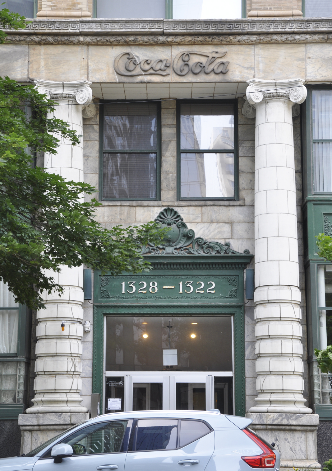 The Coca-Cola Building was designed by Frank Abbott and built from 1903-1904.  It housed offices and was used as a syrup manufacturing plant.  The building was originally 8 stories tall with 2 stories added in 1913.  It now houses condos.  [map]