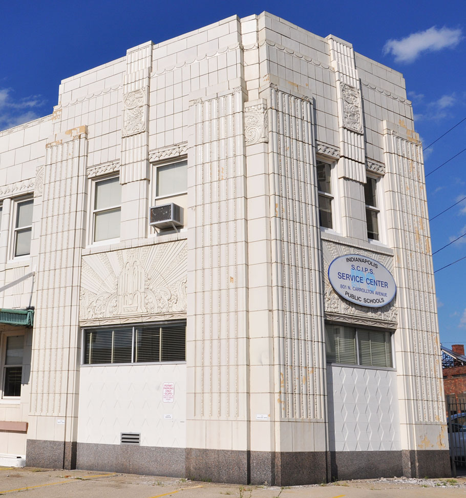 This former Coca-Cola bottling plant complex was built in 1931 and then updated in 1940 and 1949. The exterior is faced with glazed terracotta tile while the interior has travertine walls. In 1969, the buildings were sold to Indianapolis Public Schools which used them as a bus facility until around 2018. The buildings were then renovated and reopened in 2020 as the Bottleworks District. The complex includes the Garage Food Hall, the Living Room Theater, Pins Mechanical a bar with duckpin bowling and pinball, the Bottleworks Hotel, and retail stores. For more, see these websites: 1 and 2. [map]