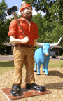 The Paul Bunyan statue in Wisconsin Dells stands in front of Paul Bunyan's Northwoods Cook Shanty. The restaurant also has some signs which include images of Paul Bunyan. These statues have been mass-produced. There are many of them in California. For more, see this website. [map] |