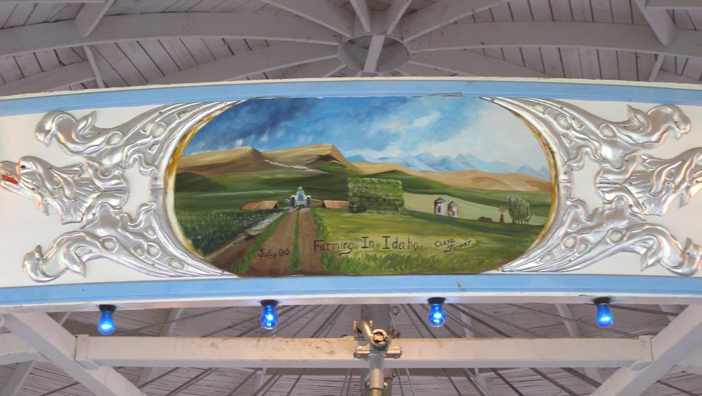 | The Idaho Centennial Carousel was built by the Spillman Engineering Company around 1926. This carousel started out as a traveling carnival machine. It was installed in Salt Lake City and Ogden, UT from 1947-1952. It was then moved to Rexburg. The carousel was restored in 1988 and reopened in 1990 in time for Idaho's centennial celebration. The chariots and twenty-six of the horses are original while twelve are new additions. The vintage Stinson organ operates with paper rolls. |