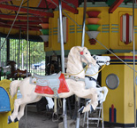 | This Allan Herschell carousel is installed in Riverside Park. It was built in 1950. There are 20 aluminum horses and two chariots. A new shelter for it was built in 2001. |