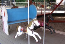 | The Thrill-Ville USA Carousel may not be here much longer. The amusement park did not reopen in 2008. This metal carousel was built by the H.E. Ewert Co. of Compton, CA in 1946. It was at Humpty Dumpty Kiddieland in La Puente, CA for 28 years. The carousel has been here since 1991. For more, see these websites: 1 and 2. |