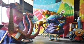 | Blaine Kern's Mardi Gras World is the world's biggest producer of floats, sculptures, and props. Blaine Kern Studios was established in 1947. For more, see this website. [map] |
