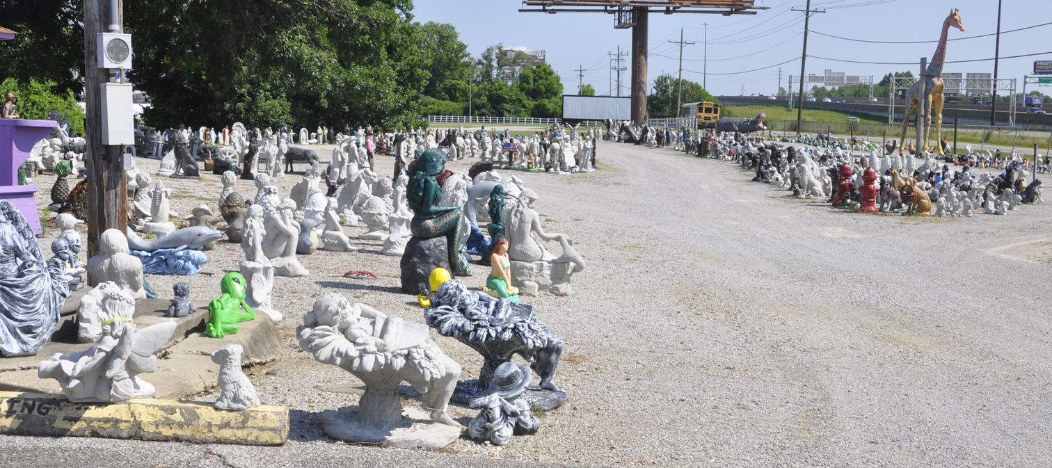 This Concrete Kingdom and the two locations in Louisville, KY are supplied with statues from the Concrete Lady in Otisco, IN (see above).