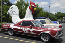 | This Chicken El Camino had been parked at Cookin' From Scratch since at least 2006. It was removed around 2021. The chicken car is now located behind the Uranus Fudge Factory in St. Robert. [map] |