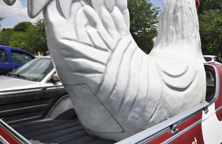 | These Roosters are installed at a CITGO gas station which features Ms. Billie's Chester Fried Chicken. These statues have been here since at least 2006. The car is an early 1970s El Camino. By 2020, the statues and car were in rough shape. [map] |