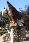 The Eagle statue in Twentynine Palms stands next to the Fraternal Order of Eagles Aerie 4092. The concrete statue was created by Howard Pierce in 1985. The statue was restored in 2003. [map] This Eagle statue in Park Falls is installed in front of the City Hall as a Veteran's Memorial. This statue of "Old Abe" seems to be a replacement of an earlier version. Old Abe was an eagle that was caught near Park Falls by Native Americans. Named after Abraham Lincoln, he became an army mascot during the Civil War. The statue's head is lowered in honor of fallen soldiers. [map] |