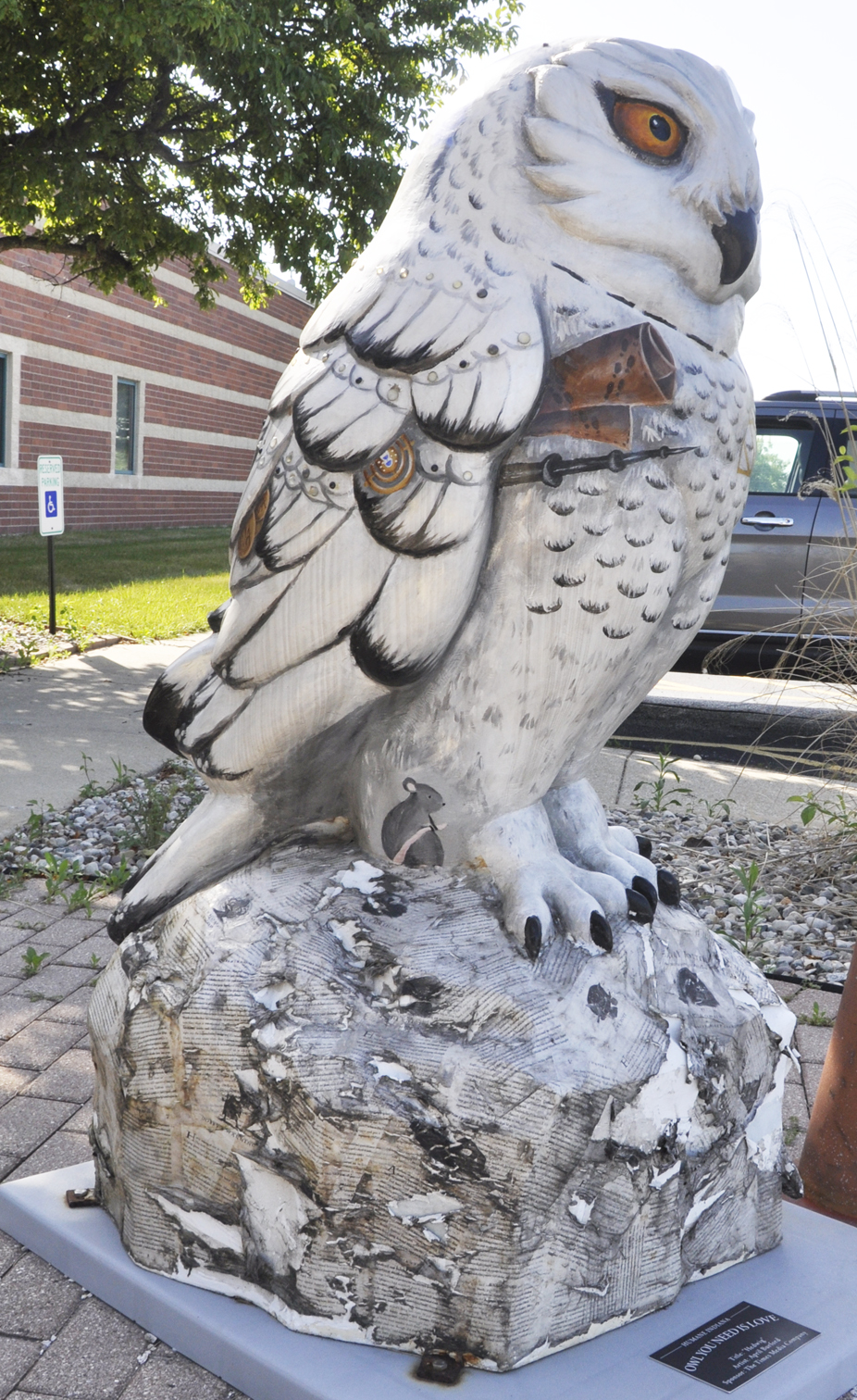 This four-foot-tall fiberglass Owl was created as part of the "Owl You Need is Love" Northwest Indiana art project in 2019. The 50 statues were sponsored by local businesses with the proceeds going to Humane Indiana. They were painted by different local artists. This statue is installed in front of the Times of Northwest Indiana and is named "Hedwig" after Harry Potter's pet owl. [map]