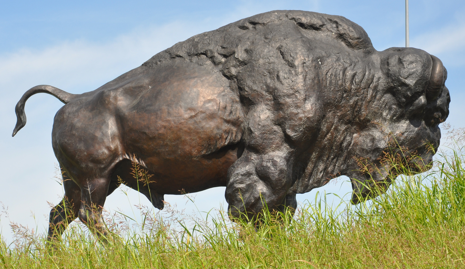 | The 18-foot-long, bronze Guardian of the Plains bison sculpture was created by Jim Gilmore and installed in 2007. [map] |