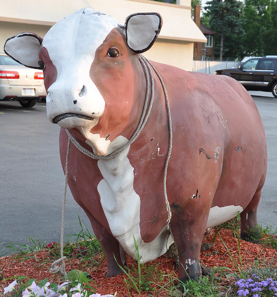 The B&W Meat Co. bull has been there since at least 2008 and probably much longer. The horns on the bull might have been added since I haven't seen any others of this type with them. [map] |