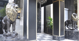 | These Lions were installed in front of Jeff Ruby's Steakhouse when it opened in 2022. [map] |