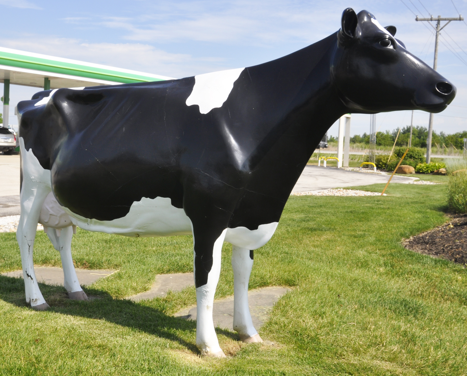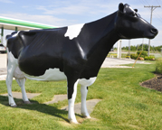 The second Cow shown above is at Fair Oaks Farms where it functions as a bench. The third photo above of the Cows on a milk tank trailer is installed alongside I-65 as an advertisement for Fair Oaks Farms. It has been there since at least 2007. [map] |