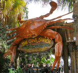 This Crab in Rockport was located at the Paradise House gift shop. These photos are from 2011. It was destroyed in 2017 during Hurricane Harvey. There was a paper mache crab in town which was built around 1958. It was 18 feet wide and installed on the roof of the Del Mar Grill. The restaurant closed in 1965 and the crab was removed in 1976. The City bought the crab for $200 and used it for parades. In 1966, it was then installed in Veterans Memorial Park. I don't know what happened to that crab. I believe there was a fiberglass crab here in the 1960s as well. In 2012, another Crab was installed in town. It was 25 feet long and built of aluminum. That Crab was destroyed by Hurricane Harvey in 2017 but it has been rebuilt. [map] |