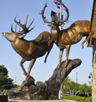 The Leaping Deer in Antigo was mounted on top of the Refuge Restaurant & Northwoods Bar sign. The restaurant is now Michael's Restaurant but the statue remains. [map] |