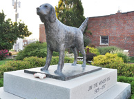 This bronze Airedale Terrier in Joplin represents Blue, the Bishop family dog. This eight-foot-tall statue was installed in front of the Heartland/Blue Buffalo Dog Food factory in 2014. You have to shoot through a fence. [map] Jim the Wonder Dog was an English Llewellyn Setter that lived from 1925-1937. He was a local celebrity that predicted future events and understood many different languages. His grave is located in the Ridge Park Cemetery. This bronze statue was installed in 1999 in a small park where the hotel he used to live in was located. For more, see this website. [map] |
