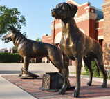 This bronze Bloodhound sculpture is located at St. Joseph Academy where the sports teams are known as the Fighting Bloodhounds. I don't know the artist or when it was installed.