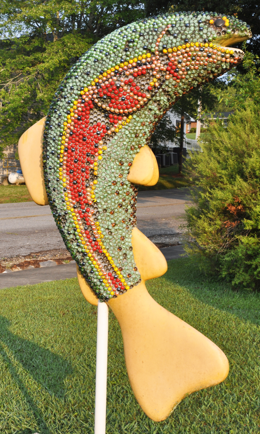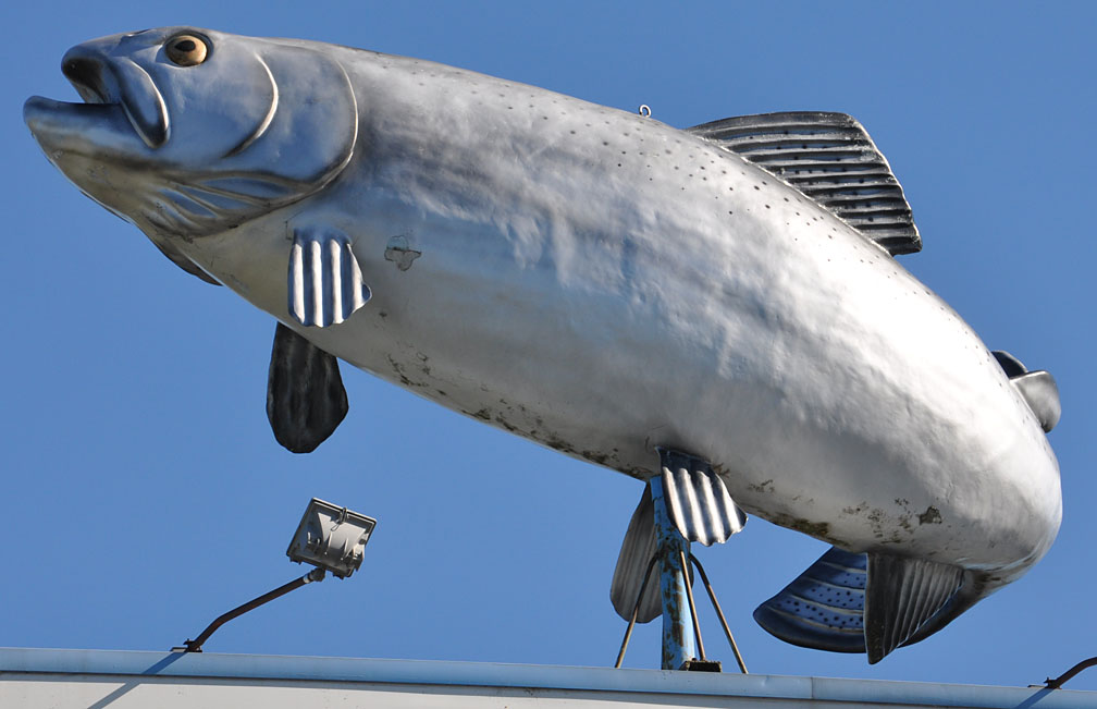 | These Fisherman's Dream metal sculptures were created in 2006 by Gary Greff who has built many other sculptures around town. The largest fish in this sculpture group is a leaping trout which is about 70 feet tall. [map] |
