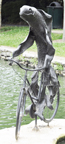 This bronze Fish on a Bicycle was created by Steven Gregory in 1998 and installed in a pond in Lewis Park. [map] |