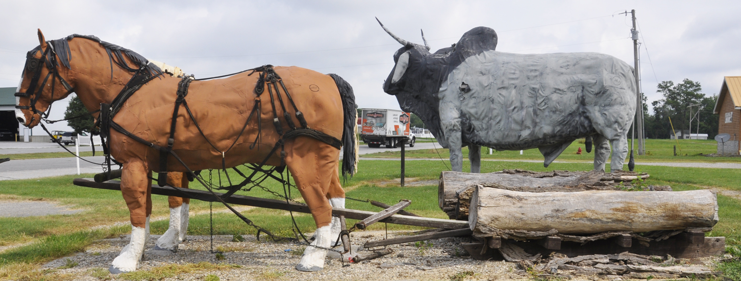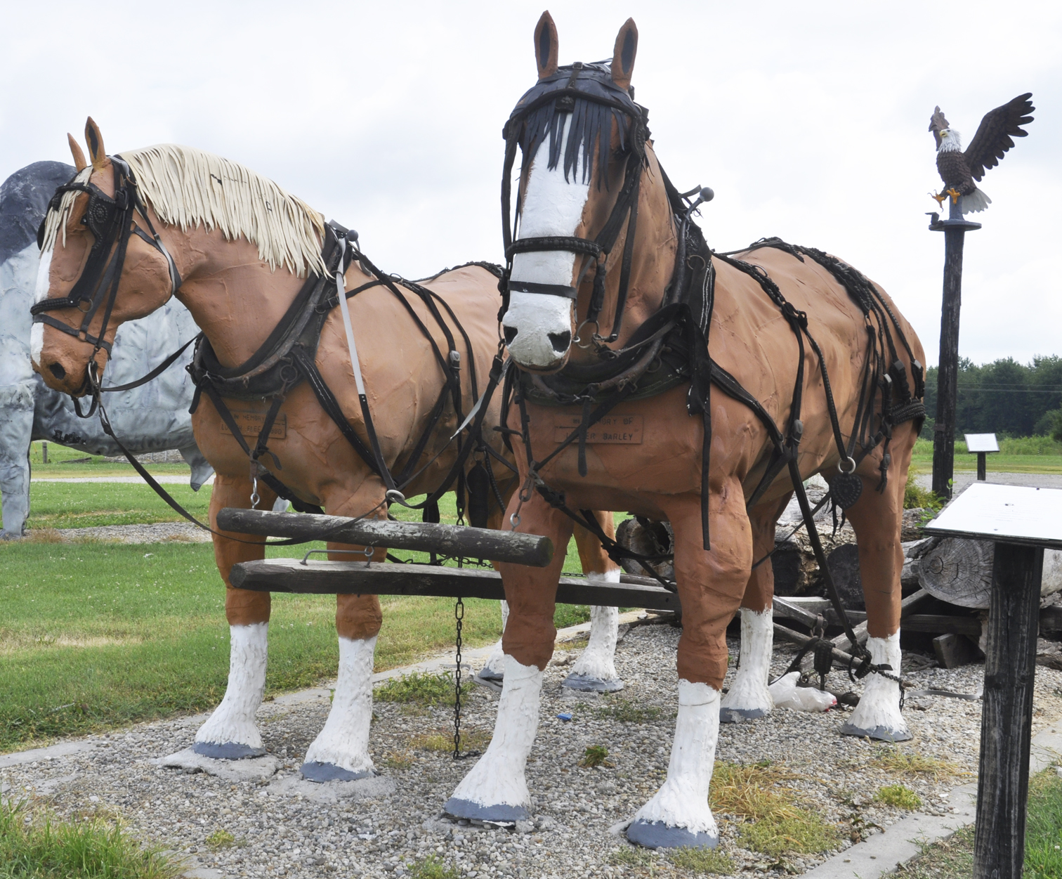 | These Draft Horses are located at the Boot City Animal Art Park. The horse sculptures were created by John Fleetwood around 2020 with tractor inner tubes. [map] |