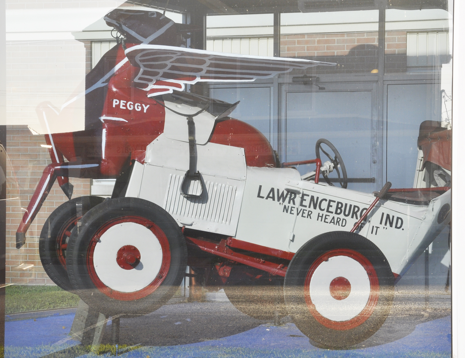In 1935, this Mobilgas Pegasus in Lawrenceburg was attached to a modified Ford Model T. It was driven in local parades. The pegasus' wings and body moved up and down. "Peggy the Flying Horse" is now protected in a glass display case. For more, see this website. [map] |