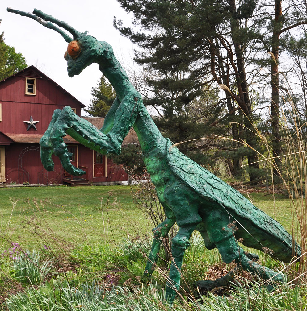 The Grasshopper, officially named "The Farmer's Nightmare", is 18 feet long and 10 feet tall. It was created from recycled metal in 2000 by local students. The sculpture commemorates St. Urho's expulsion of the grasshoppers from Finland (Kaleva was founded by Finnish settlers). There is a statue of St. Urho in Menahga, MN. |