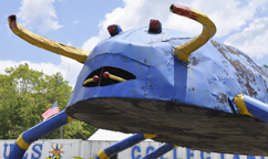 | This Cootie is a reproduction of the children's toy. The statue is 15 feet tall and was originally a float in the 1975 Macy's Day Thanksgiving parade. After that, the statue was installed at the Capitol Children's Museum in DC. That museum closed in 2004 and was moved to American Celebration on Parade. For more, see this website. [map] |