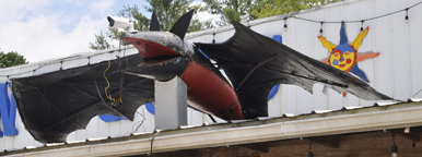 This 36-foot-tall Bat in Louisville was built in 2000 and is installed on the side of Caufield's Novelty, a costume and party supply store. [map]