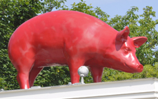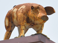 This Pig in Rochester is installed on the roof of Cheap Charlie's restaurant. [map]