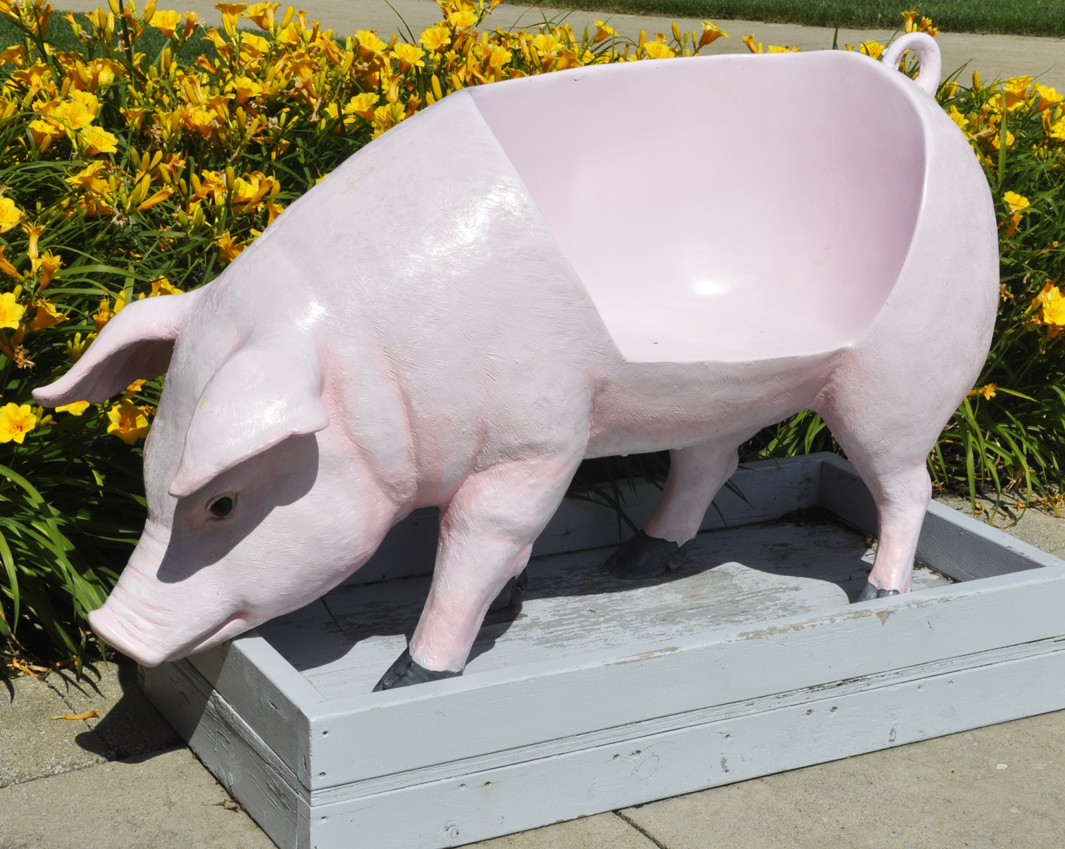 This Pig in Burbank was installed on the roof of Chuck's Southern Comforts Cafe around 2012. [map] This Pig is Fair Oaks was created as a bench or for photo-ops. It is installed at Fair Oaks Farms. [map] |