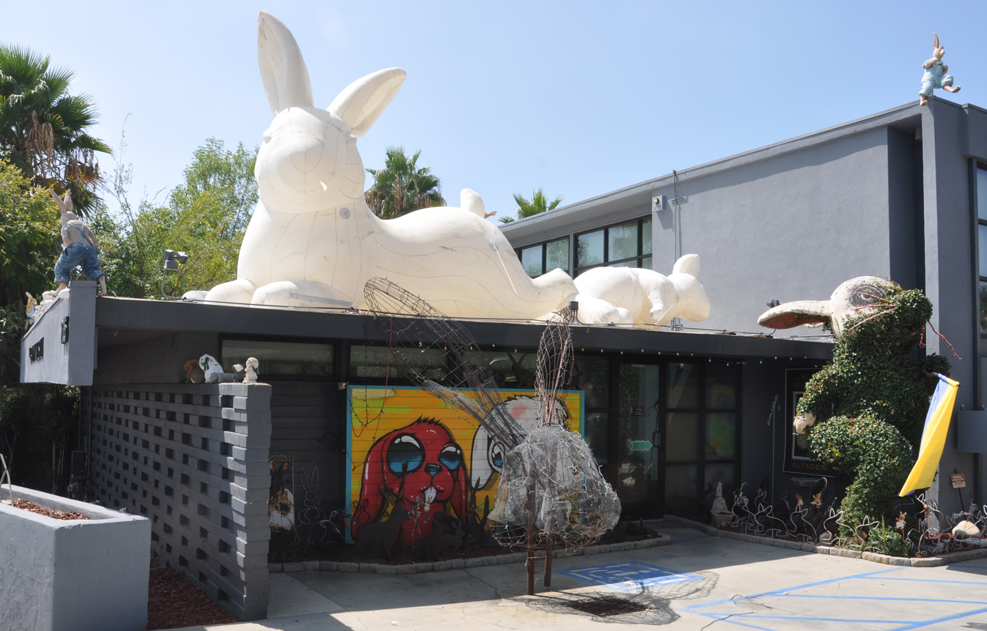 | The Bunny Museum opened in 1998 in the owner's house in Pasadena. It moved to Altadena in 2017. The museum featured more than 35,000 rabbit-related items. The museum was destroyed in a wildfire in 2025. Two of the statues' wire frames remain. For more, see this website. |