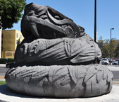 | This Plumed Serpent is made of cast stone by Robert Graham. It was installed at Plaza de Cesar Chavez in 1996. [map] |