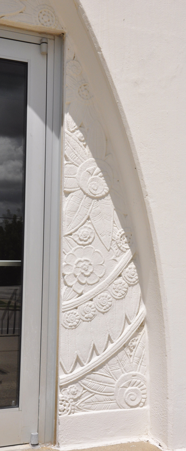| The Community Building was designed by Raymond A. Orput and built with poured concrete in 1939. For more, see this website. [map] |