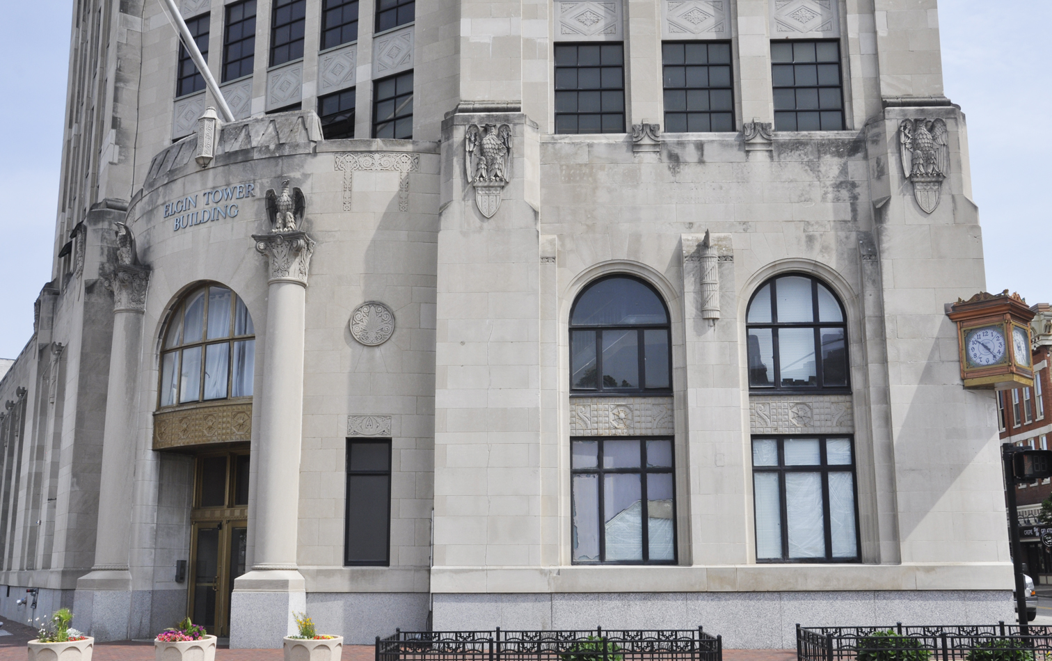 | The Elgin Tower was built in 1929 as the Home Banks Building. It was designed by designed by W. G. Knoebel. When the First National Bank of Chicago moved into the building in 1932, it was renamed the Elgin Tower Building. For more, see this website. [map] |