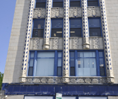 The Universal Studios Film Exchange building was built in 1937. It is located on Film Row, a section of Wabash Avenue which has many Art Deco, former movie industry buildings. By 2011, most of the glass block has been removed. [map] |