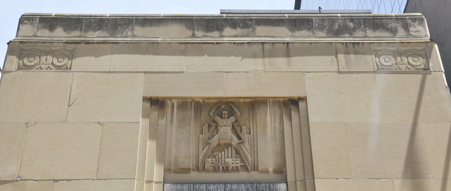 | The Commonwealth Edison substation was designed by Holabird & Root and built in 1930. The bas relief panel depicting the "Spirit of Electricity" was created by by Sylvia Shaw Judson. For more, see this website. [map] |