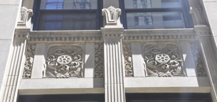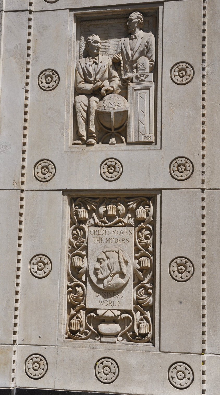 | The Trustees System Service Building, now known as the Century Tower Condominiums, was designed by Thielbar & Fugard and built from 1929-1930. The decorative reliefs depict the history of banking and commerce. For more, see this website. [map] |