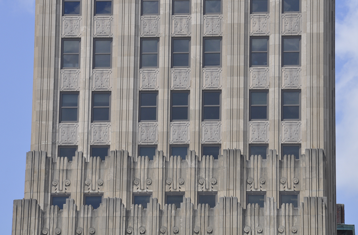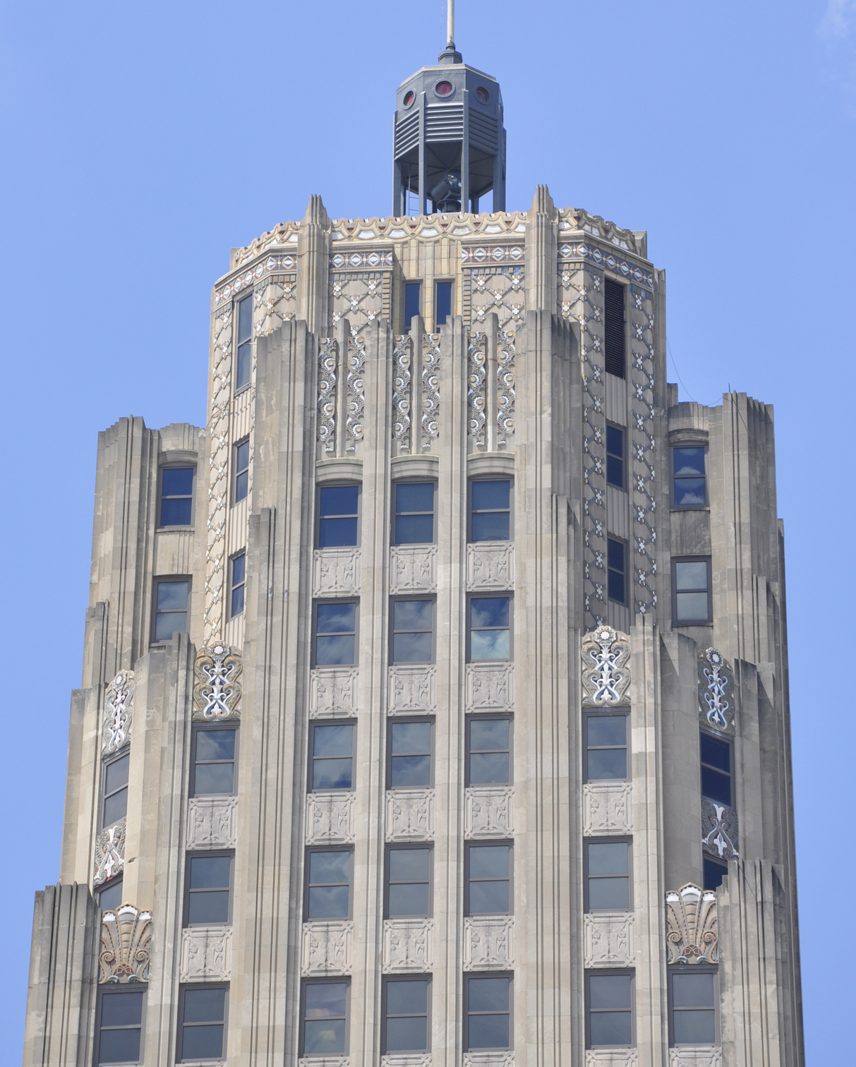 | The Lincoln Bank Tower was designed by Alvin M. Strauss and built from 1929-1930. The design was inspired by the Tribune Tower in Chicago. For more, see this website. [map] |