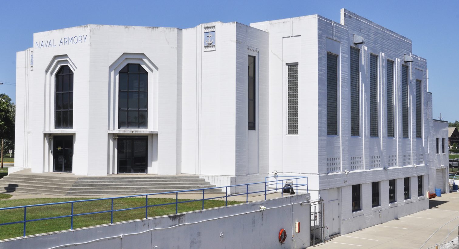 | The Naval Armory was designed by John P. Parrish and Ben H. Bacon. It was completed in 1939. The Navy left the building in 1966. The building now houses the Indiana Army National Guard. [map] |