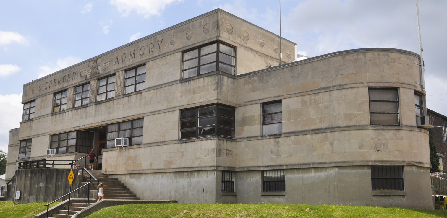 | This National Guard Armory was designed by Jacob Edwin Kopf and built in 1938. It closed in 2006 and the building now houses a gymnastics studio. [map] |