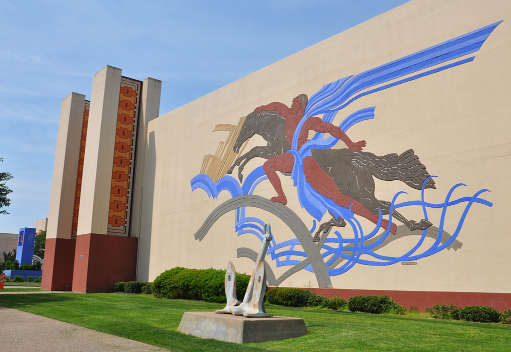 Fair Park includes the largest collection of Art Deco buildings in the U.S. They were built for the 1936 Texas Centennial Exposition. Unlike most expositions, these buildings were designed to be permanent. There are also numerous Art Deco statues and murals. The Hall of State, upper right photo, now houses the Texas Hall of State Museum.