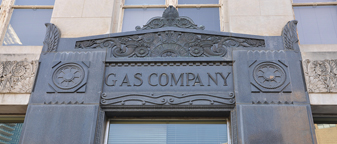 The gas company no longer exists and the building now houses city offices. The sign, which is about 20 feet tall, was removed in 2018 and moved to city storage. There were concerns that it was no longer structurally sound. It was restored and reinstalled in 2023. The neon was replaced with LED tubing and the sign revolves. For more, see this website. [map] |