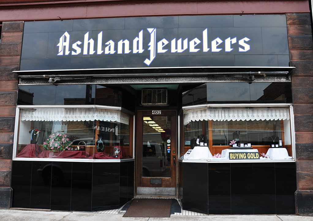 | The Ashland Jewelers storefront appears to be from the 1930s or 1940s. It is faced with structural glass, commonly referred to as vitrolite. The top panels may be new since Ashland Jewelers wasn't established until 1979. The name was changed from Born's Jewelers at that time. [map] |