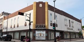 | The Porters of Racine furniture store opened in 1857. The business moved to this location in 1939. The store closed in 2010. These photos are from 2012. From 2014-2015, the building was demolished. For more, see this website. |