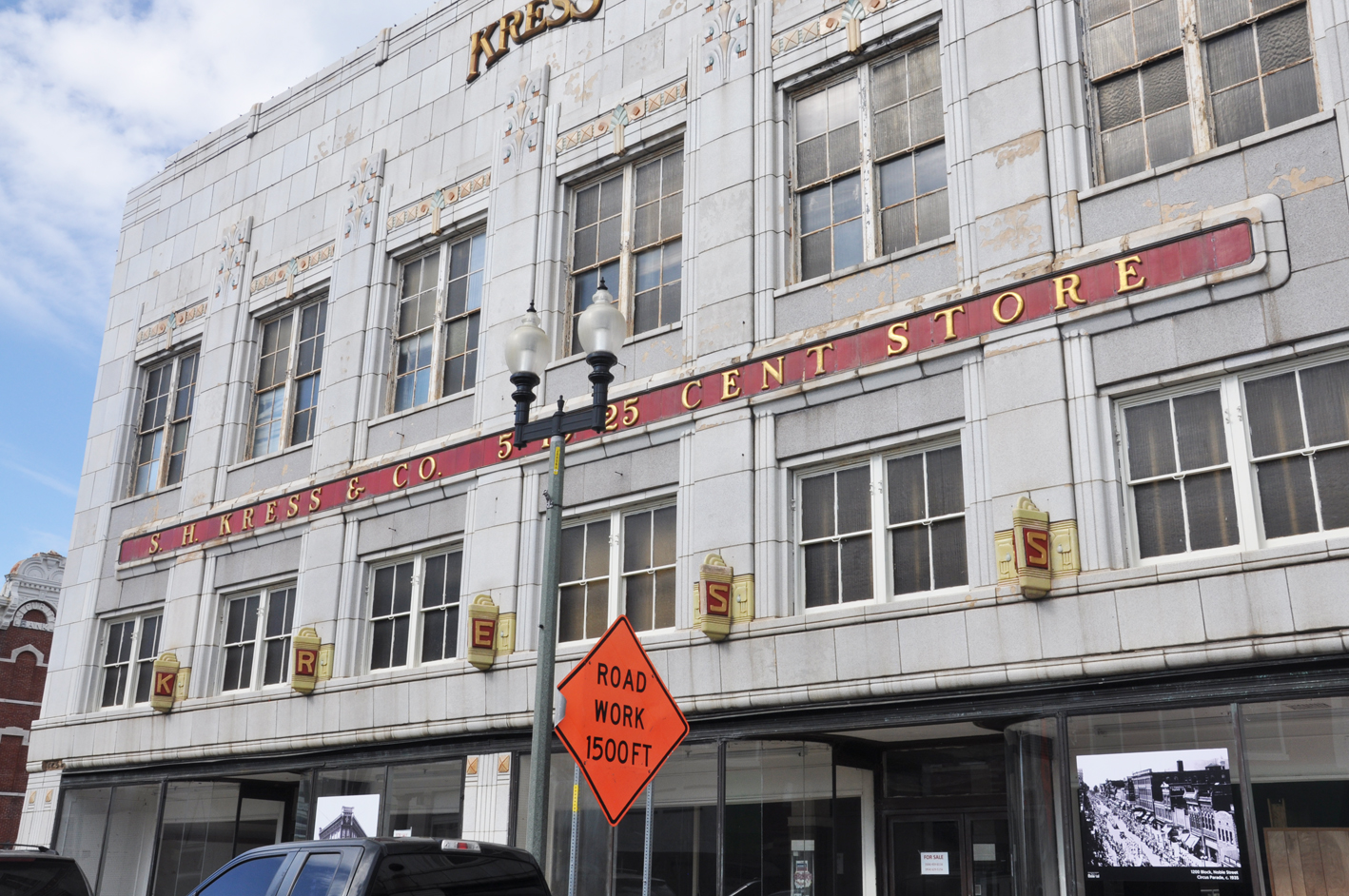 | The Huntsville Kress was built in 1931. The building was vacant when this photo was taken in 2010. The ground floor now houses a bar and a nightclub. The building is listed on the National Register of Historic Places. [map] |