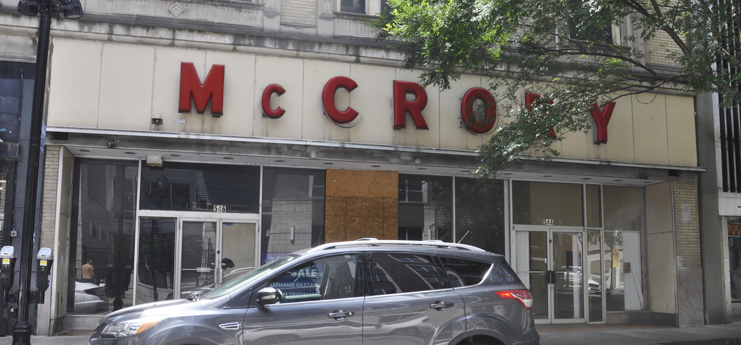 This McCrory's in Canonsburg was built in 1940. It closed in 1994. It now houses Hidden Treasures, a thrift store. [map] |